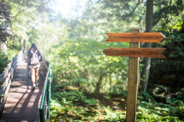 istockphoto-962577150-612×612 ← Previous Next → Blank wood arrows on a foot trail in a forest. Aa adult woman is seen walking in the background